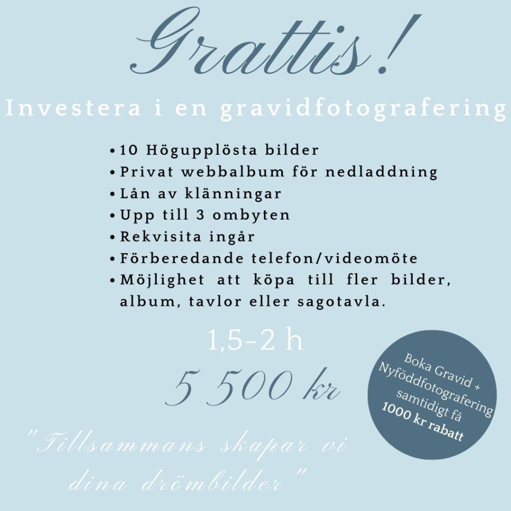 Boka din Gravidfotografering och Nyföddfotografering samtidigt och få 1000 kr rabatt på bokningsavgiften till nyföddfotograferingen.